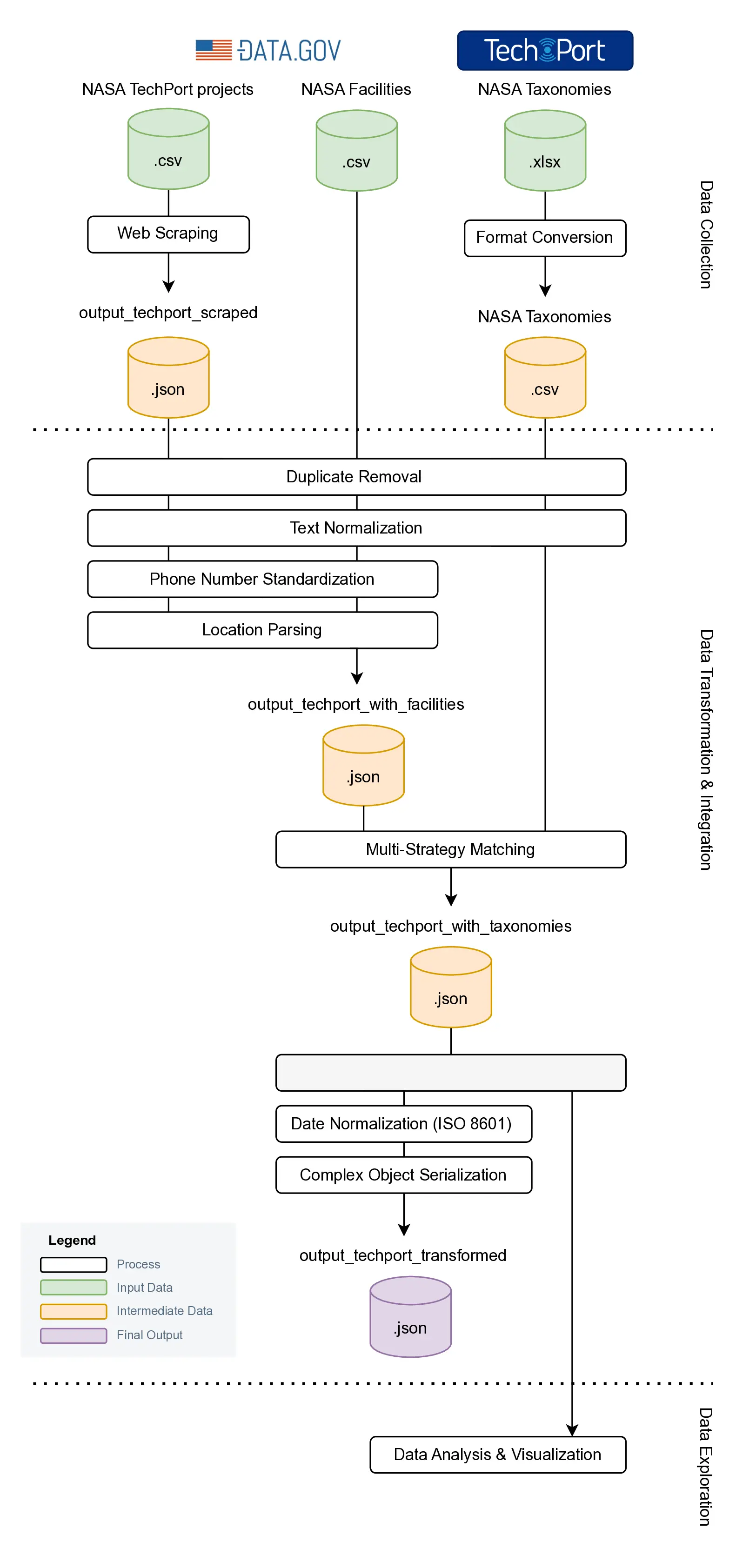- Data Normalization: The system implements automated cleaning, including ISO 8601 date standardization and multi-strategy matching for technology taxonomies.